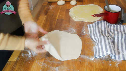 - Hamurdan 8 beze yapıp yuvarlak yapın ve bez örtüp dinlenmeye bırakın.