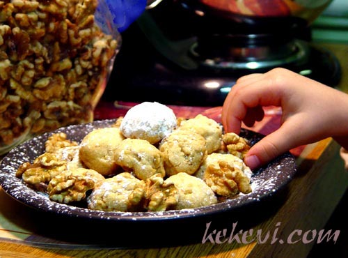 7. Fırından çıkınca tepsiden alıp üstüne kalan toz şekeri serpiştirip soğumaya bırakın. Veya isterseniz ılındıktan sonra pudra şekerine batırabilirsiniz.