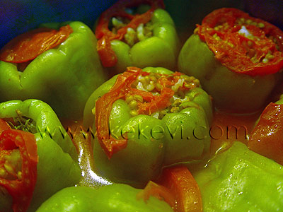 - İsteğe göre ince domates dilimlerinden kapaklar yapıp üzerini geçmeyecek kadar kaynamış su ilave ederek kapağını kapatın.