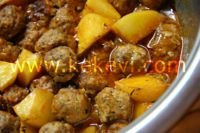 - Patates ve köfteleri aktarıp üzerini ancak çok geçmeyecek kadar su ilave ederek kısık ateşte 20 dakika kadar pişirin.