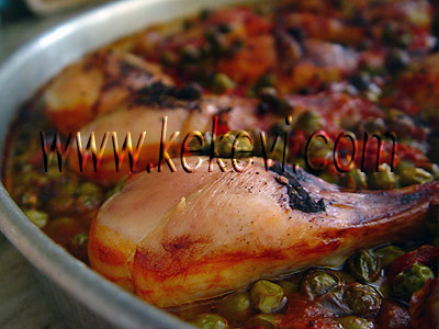 3. Bezelyeleride tepsiye yerleştirdikten sonra 200C dereceli fırında tavuklar kızarıp içleri pişinceye kadar pişirin.