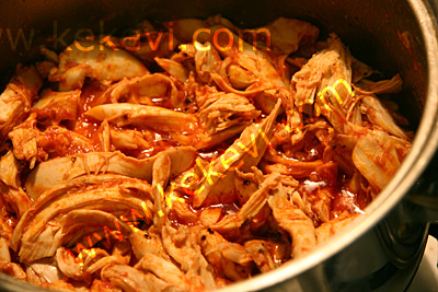 - Ilındıktan sonra derisini soyup etlerini kemiklerinden ayıklayarak çok ufak olmayacak şekilde didikleyin.
