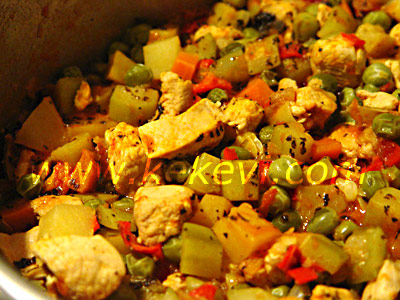 - Sırasıyla havuç, patates ve kabakları tek tek ekleyip biraz daha çevirdikten sonra bezelyeyi, baharatlarını ve üzerini çok geçmeyecek kadar kaynamış sıcak suyu ilave ederek sebzeler yumuşayana kadar pişirip servise hazır hale getirin.
