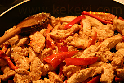- Tavuk etini parmak şeklinde uzunca doğrayın. Biberleride uzun ve iri doğrayıp hazır hale getirin.