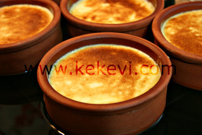 - İçi su dolu bir fırın tepsisine muhallebileri yerleştirin ve en az 200C dereceli fırında (varsa üst ızgara ayarını kullanın) muhallebilerin üstleri kızarana kadar bekletin.