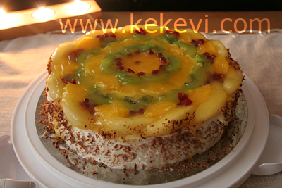 10. Pastanın üstünü dilimlenmiş meyvelerle istediğiniz gibi süsleyin.