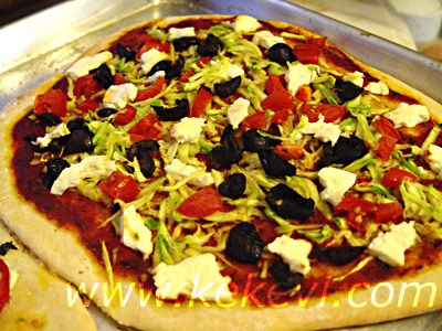 Pizza sevip kalorisinden şikayet edenler daha az kalorili, sebze ağırlıklı bu pizzayı tercih edebilirsiniz. Evde hazırladığınız için hamurunu istediğiniz incelikte yapmanız mümkün..