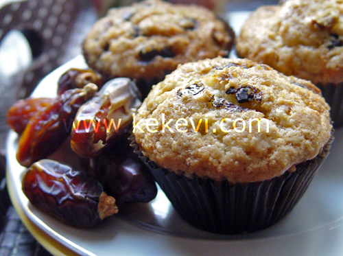 4. Muffin kağıtları serilmiş kalıplara kaşıkla aktarıp tozşeker serpiştirdikten sonra 170C derecede kabarıp iyice kızarana kadar (yaklaşık 25-30 dakika) pişirin.