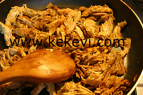 - Tavuğu yıkayıp iyice haşlayın. Ilındıktan sonra kemik ve derilerini ayıklayıp çok ufak olmayan parçalara ayırın.