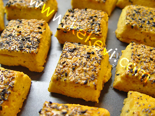 - Üzerine çörekotu vs. serpip bıçakla kare veya dikdörtgenlere kesin.