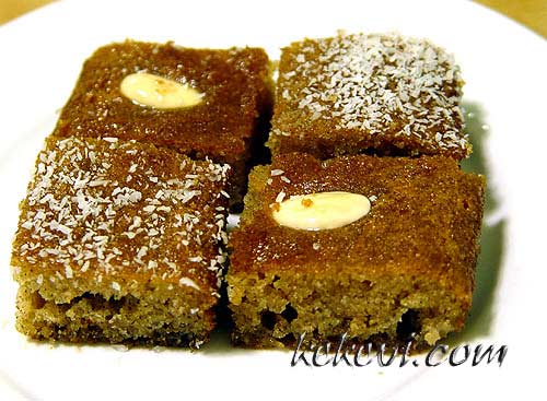 - Seker ve suyu kaynatip orta sicaklikta olmak uzere firindan cikan tatlinin uzerine gezdirin. Soguyunca dikdortgen veya baklava dilimlerine kesin. Badem dosememisseniz hindistan cevizi serpebilirsiniz.