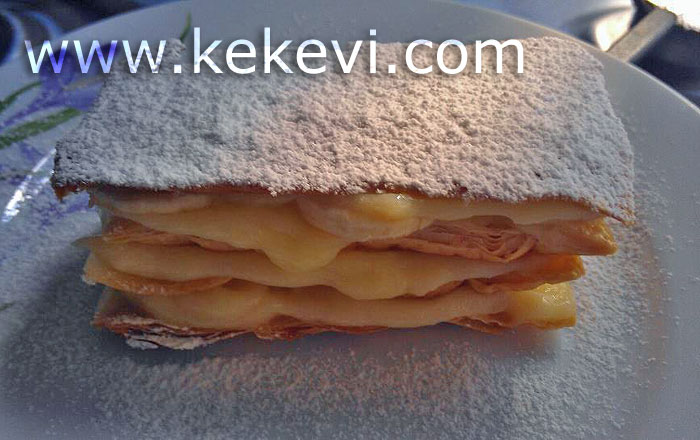 * Milföy parçalarını pişirmeden önce şekil alacak kadar çözülmeye başladığında hafif unlu tezgahta merdane ile boyunu iki kat uzatana kadar açın. Tarifte ikiye kesilen milföy parçasını bu sefer dörde keserek bir milföyden 4 parça elde edin. Bu parçaları tepsiye yerleştirip kabarmamaları için birkaç yerinden çatal batırıp pişirdikten sonra pastanın katları olarak kullanabilirsiniz.