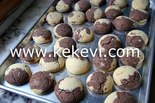 - Her iki hamurdan birer parça alıp birlikte yuvarlayıp tepsiye dizin.