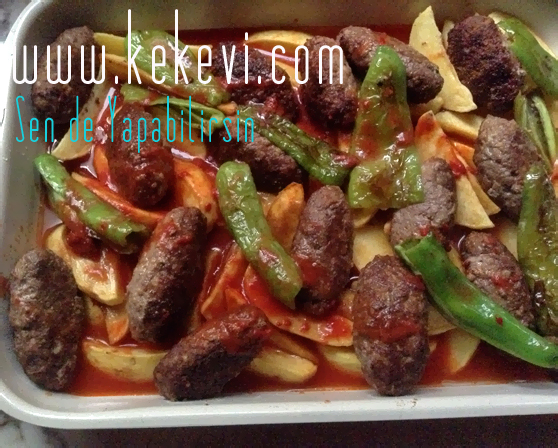 - Sonra köfteleri de her iki tarafını hafif kızaracak kadar kızartıp patateslerin üzerine dizin.