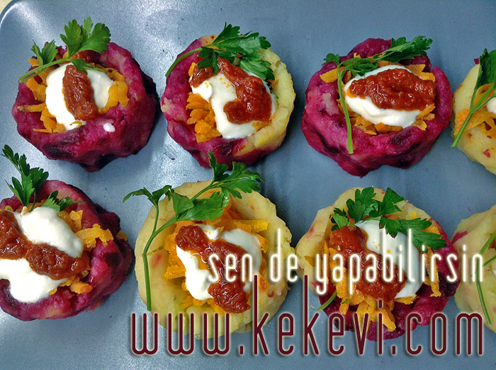 6. Pürelerden çanaklar yapıp servis tabağına dizin.