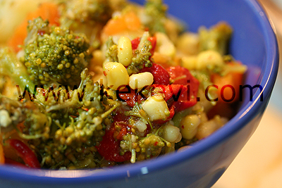 - Konserve mısırın suyunu süzüp brokolilerle birlikte salataya ilave edin.