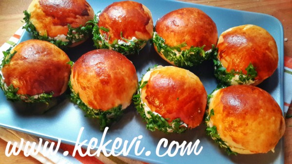 - Ilındıktan sonra arasına yağlı bir beyaz peynir veye krem peynir sürüp isterseniz farklı malzemeler ekleyin. Dış kısmına da biraz peynir sürüp kıyılmış maydanoza batırıp servis yapın.