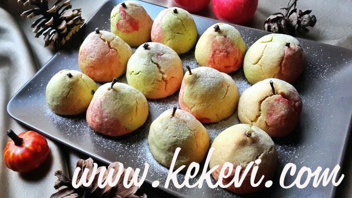 Bu şirin armut şeklindeki kurabiyeleri doğal olarak renklendirdim. Dolgusu içinse güllü lokum kullandım. Ancak siz isterseniz incir kayısı gibi kuru meyveleri pişirip püre haline getirerek farklı dolgular da hazırlayabilirsiniz.