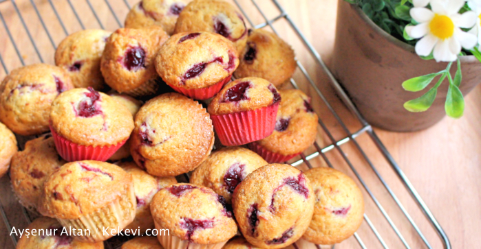 Vişne sevenler için pratik bir mini topkek tarifi.. Mini topkek kalıbınız yoksa normal topkek kalıplarını da kullanabilirsiniz.