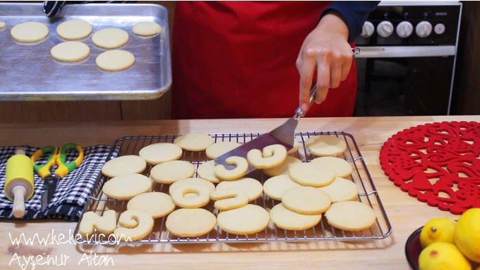 - Bir barça hamuru kalıplarla kestikten sonra kalan parçaları toplayıp ikinci hamuru latına doğru birleştirip ikinciyi açın ve aynı işlemi tekrarlayın. Hamuru ne kadar az eller yoğurup tekrar açarsanız okadar iyi. Çünki oynadıkça ağızda dağılmak yerine daha sert bir kurabiye olmaya başlarlar piştikçe