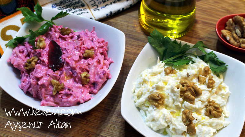 Kereviz ile yapabileceğiniz çok basit ve kereviz ile aranız iyi olmasa bile seveceğiniz güzel bir salata tarifi… Ben pancar ile renklendirip daha da renklendirmek istedim..