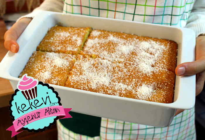 - Dikdörtgen ısıya dayanıklı orta boy fırın tepsisini hafif yağlayıp karışımı dökün. Üstünü düzeltip ısıtılmış 175C li firinda üstü iyice kızaranakadar pişirin.