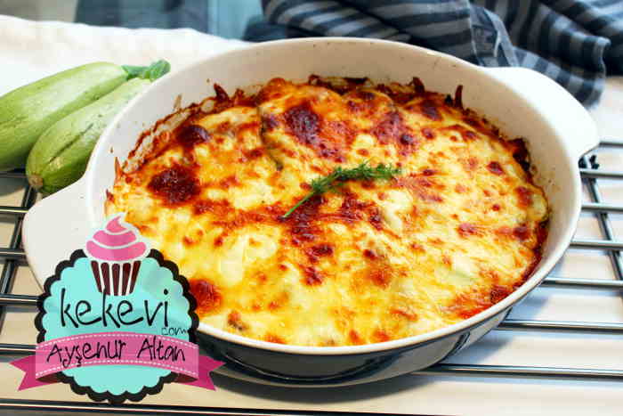Fırında beşamel soslu nefis bir kabak yemeği tarifi. Izgarada pişen şerit kabakları fırın kabına dizip aralarına tavuk, kıyma veya et ve domates sosundan oluşan karışımdan yayıyorsunuz.. En üstüne beşamel sos ve kaşar rendesi. Nefis bir lezzet oluyor. Kabağı sevmeyenler bile sevecektir 🙂
